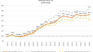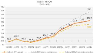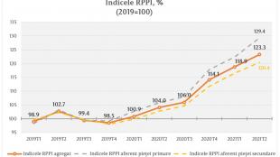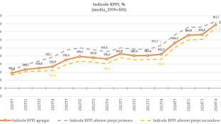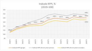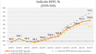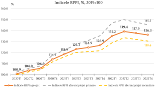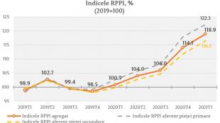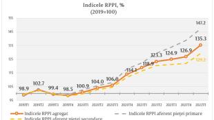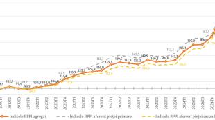 Indicele RPPI agregat a înregistrat valoarea de 211,7 la sută, fiind în creștere cu 18,4 la sută față de trimestrul IV 2024 și cu 35,4 la sută față de trimestrul I 2024.