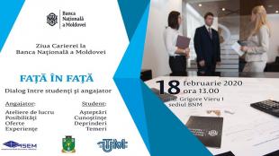 BNM organizează, pe data de 17 februarie 2023, Ziua Carierei la Banca Națională a Moldovei. Evenimentul este dedicat promovării interesului față de sectorul financiar-bancar printre publicul preocupat de o carieră în cadrul băncii centrale.