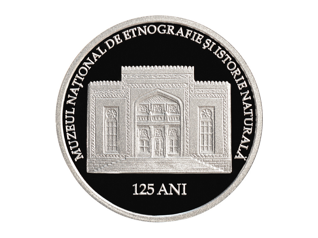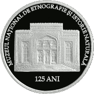 • по окружности монеты, заглавными буквами, выгравированы надписи: „MUZEUL NAŢIONAL DE ETNOGRAFIE ŞI ISTORIE NATURALĂ” и „125 ANI”.