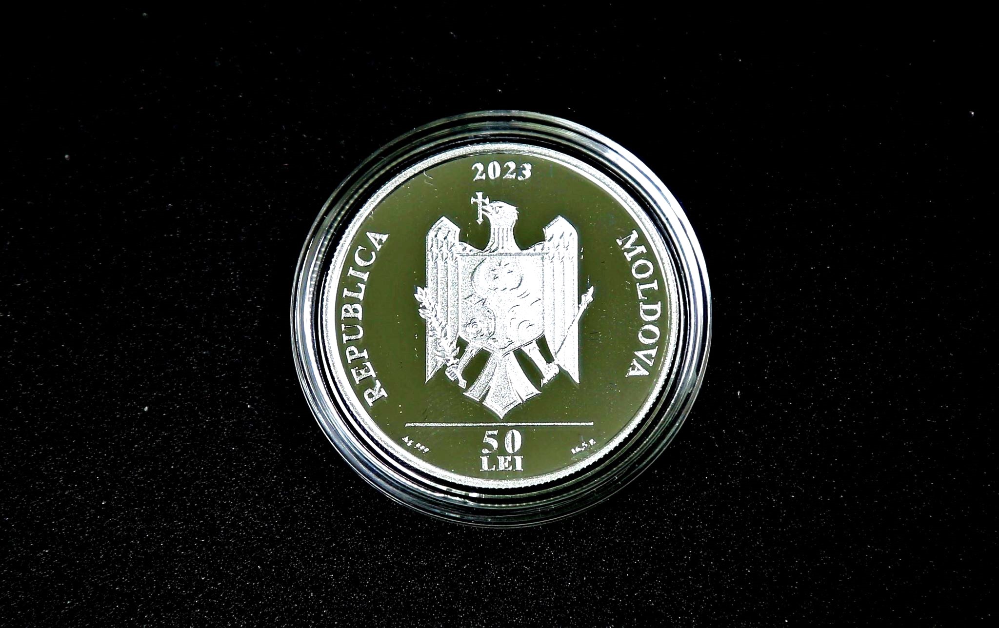 • Герб Республики Молдова, год выпуска «2023», надпись полукругом «REPUBLICA MOLDOVA», на свободном поле монеты - «Ag 999», номинал «50 LEI» и «16,5 г»..