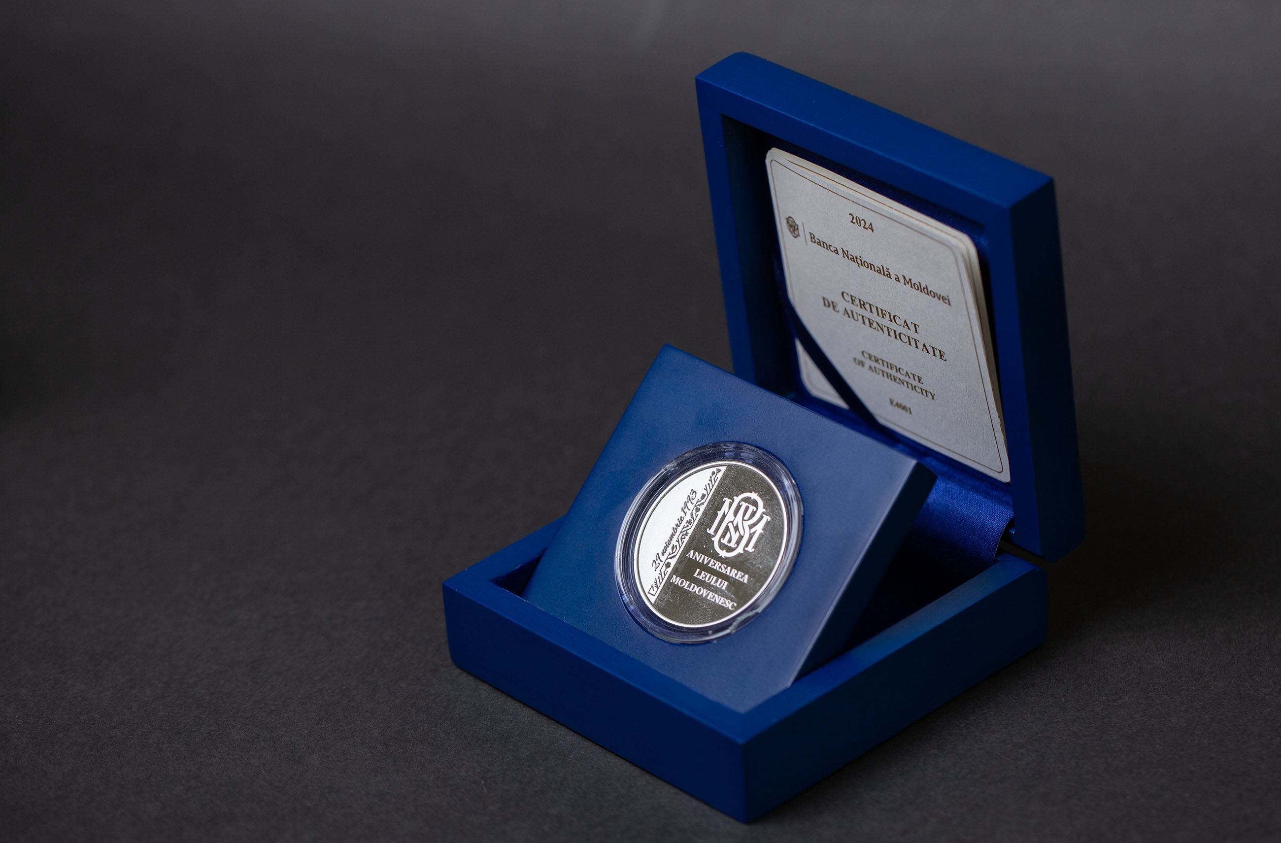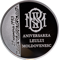 • надпись заглавными буквами «ANIVERSAREA LEULUI MOLDOVENESC»