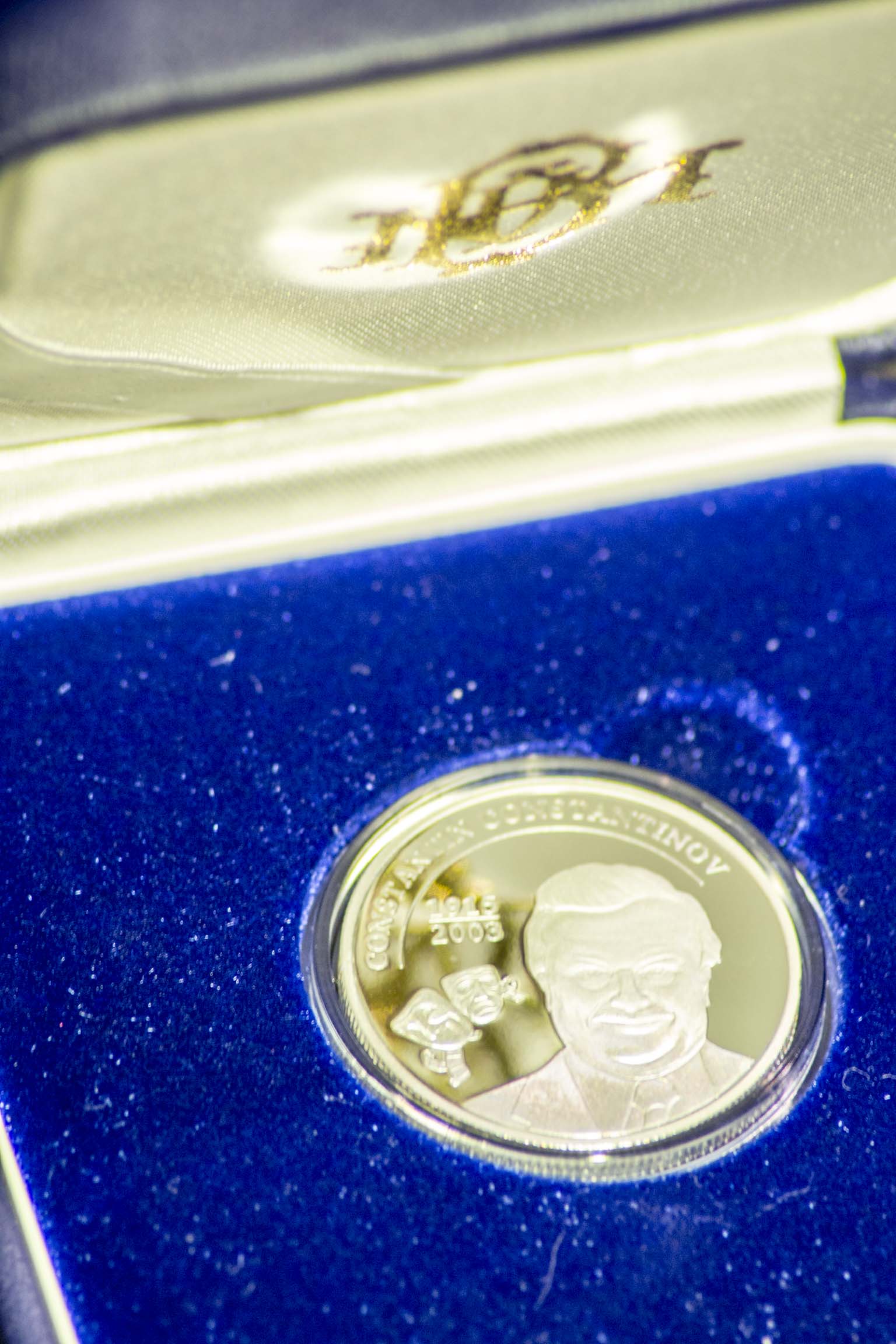 • по окружности монеты  заглавными буквами  выгравирована надпись „CONSTANTIN CONSTANTINOV".