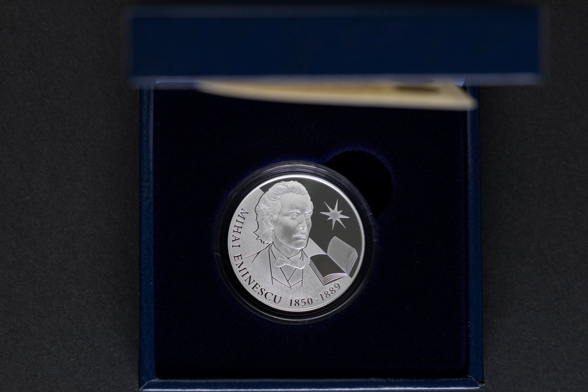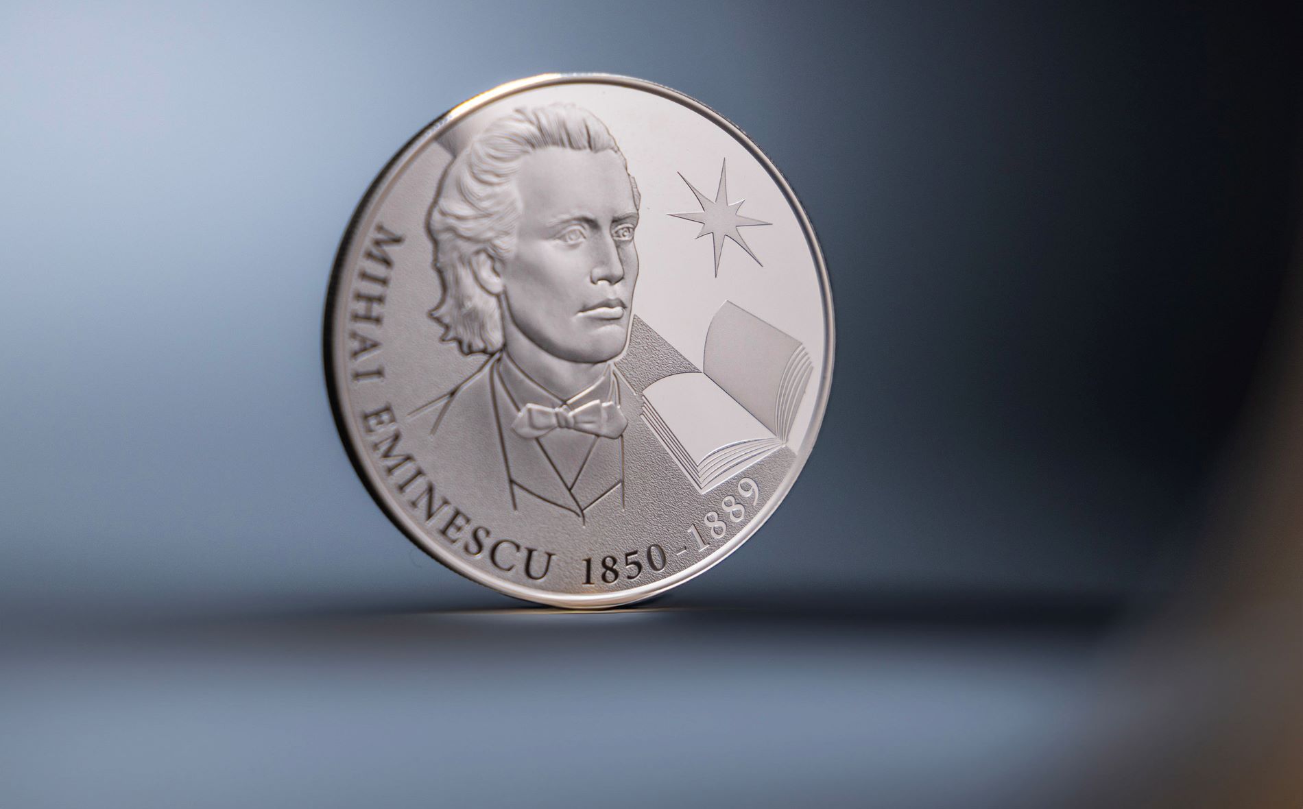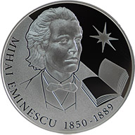 • полукругом надписи заглавными буквами «MIHAI EMINESCU»
