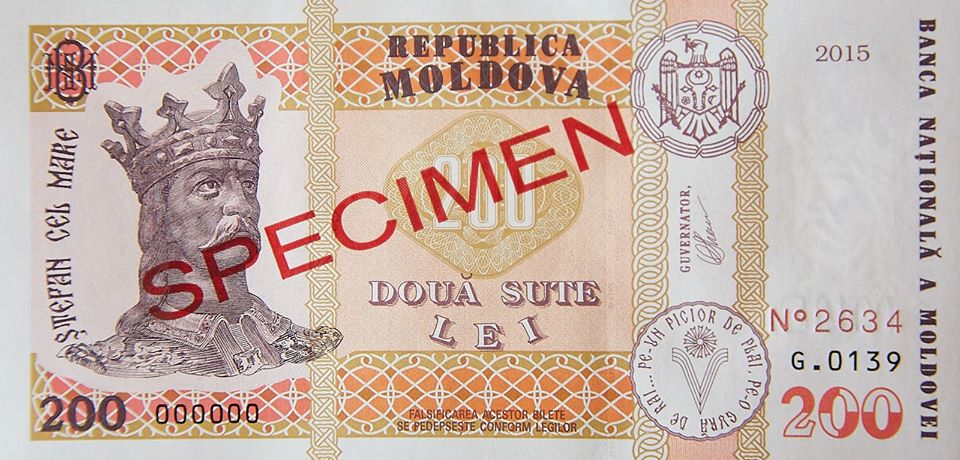 Модернизированная банкнота номинальной стоимостью 200 ЛЕЕВ, образца 2015 года, с факсимильной подписью президента Национального банка Молдовы - Октавиана Армашу.