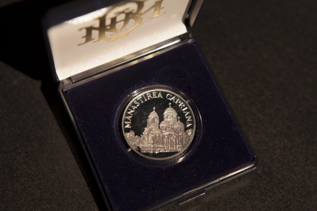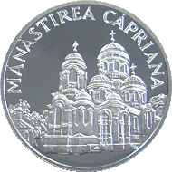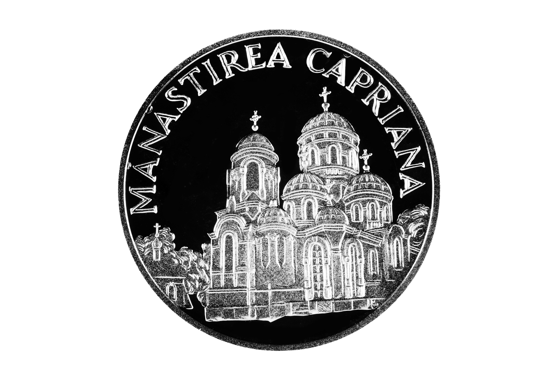 • в верхней части, по окружности монеты – заглавными буквами выгравирована надпись "MĂNĂSTIREA CĂPRIANA".