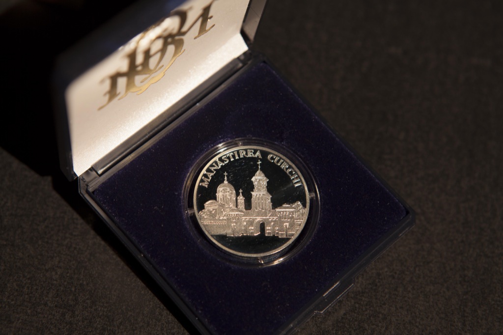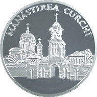 •  в верхней части, по окружности монеты – заглавными буквами выгравирована надпись "MĂNĂSTIREA CURCHI".