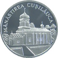 •  в верхней части, по окружности монеты – заглавными буквами выгравирована надпись "MĂNĂSTIREA CUŞILĂUCA".