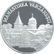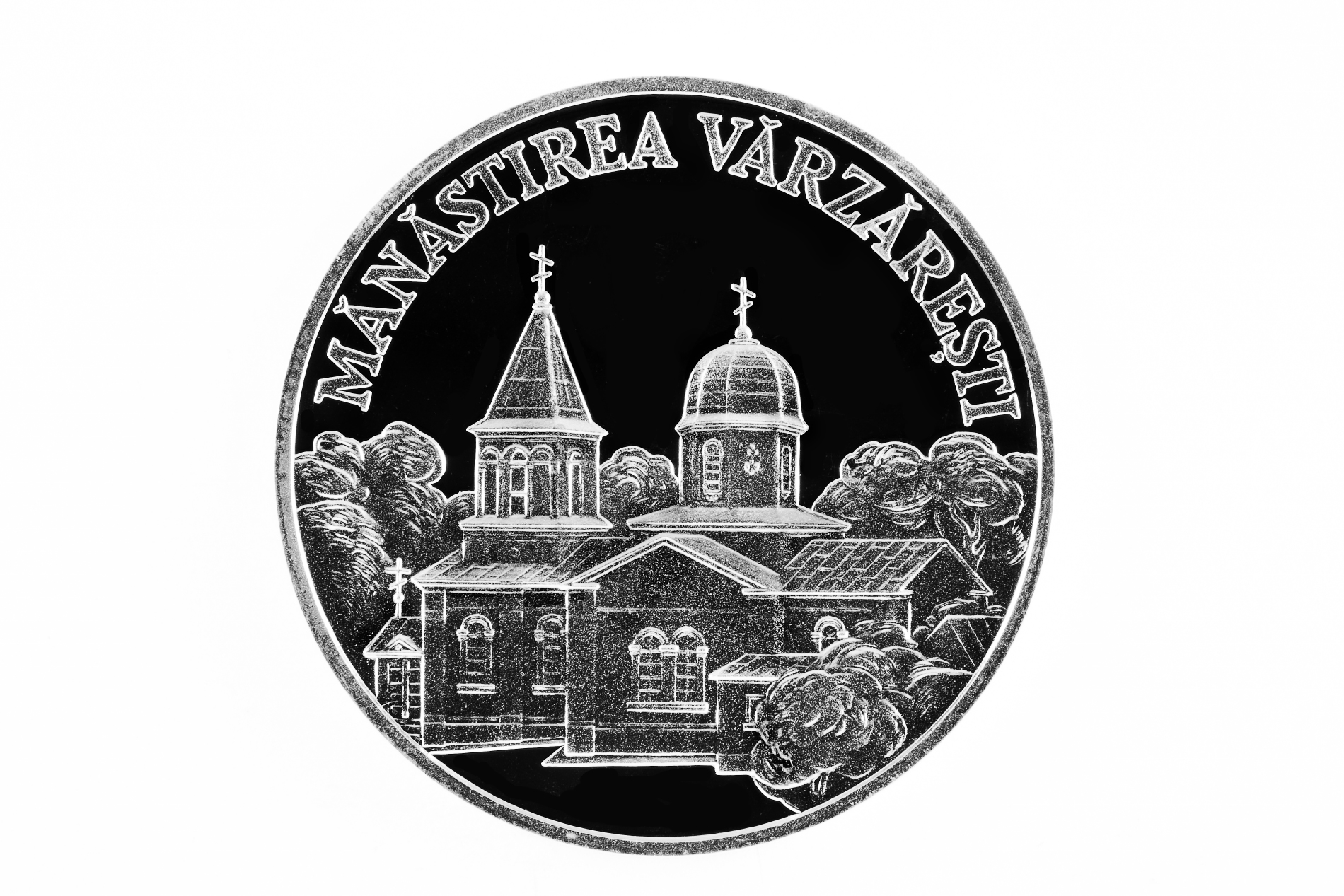 •  в верхней части, по окружности монеты – заглавными буквами выгравирована надпись "MĂNĂSTIREA VĂRZĂREŞTI”.