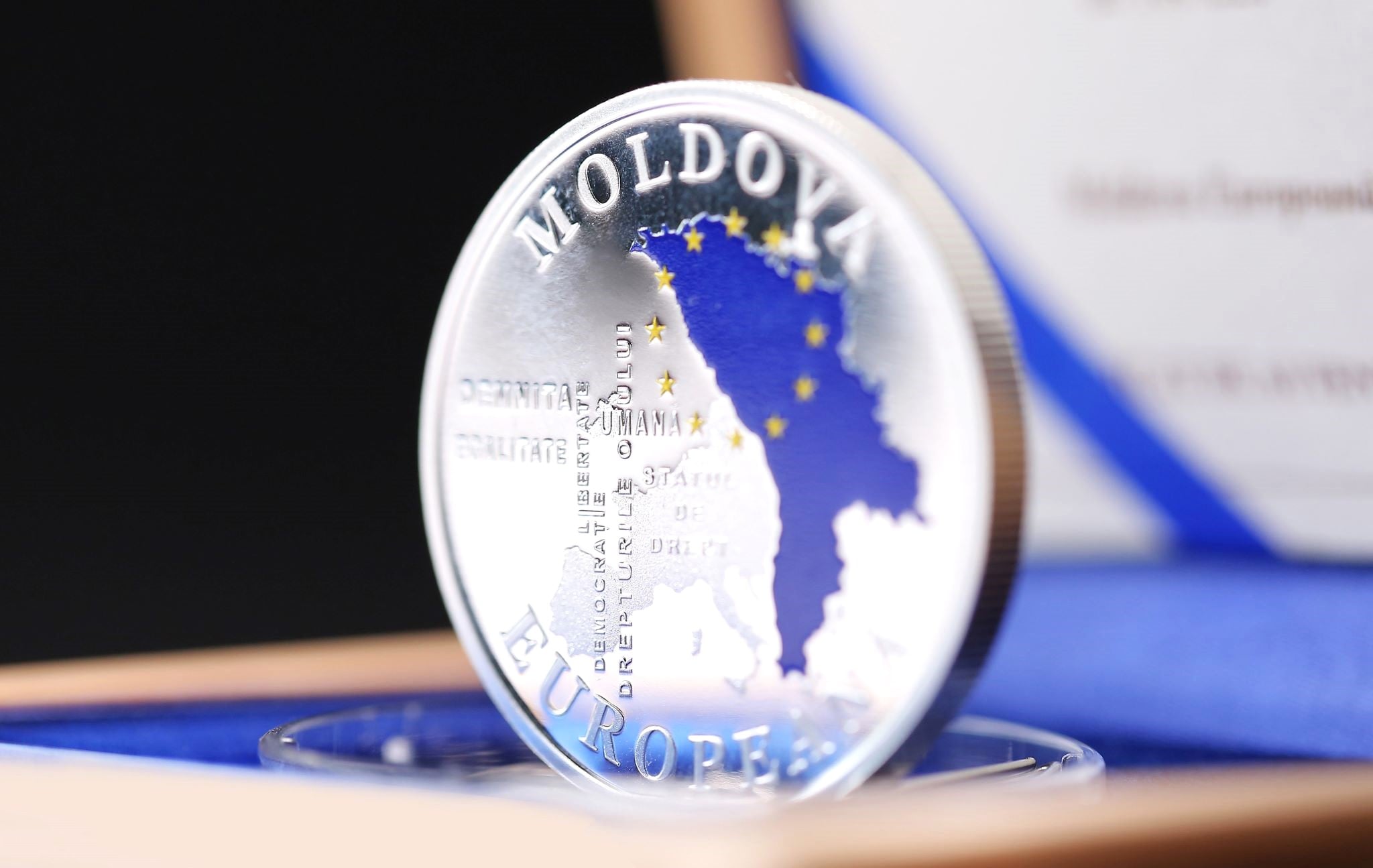 Памятная монета «Европейская Молдова» посвящена историческому событию в Республике Молдова, отмеченному 14 декабря 2023 года, когда Европейский Совет одобрил начало переговоров о вступлении Республики Молдова в Европейский Союз (ЕС). Соглашение об ассоциации между ЕС и Республикой Молдова, подписанное 27 июня 2014 года, заложило основы политической ассоциации и углубленной экономической интеграции, продвигая общие ценности и консолидированное экономическое сотрудничество. В 2022 году Европейский Совет признал европейскую перспективу Республики Молдова и предоставил ей статус страны-кандидата на вступление в ЕС. Общее стремление к вступлению Республики Молдова в ЕС подтвердили граждане, принявшие участие в Национальном собрании «Европейская Молдова», состоявшемся 21 мая 2023 года на Площади Великого Национального Собрания в Кишиневе. Проведя 1 июня 2023 года заседание Европейского политического сообщества, Республика Молдова стала «политическим сердцем Европы».