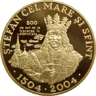 Памятная монета "Штефан сел Маре ши Сфынт - 500 лет со дня смерти господаря Молдовы", в обращении с 2 июля 2004 г.