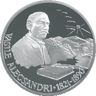 • в нижней части, по окружности монеты – заглавными буквами выгравирована надпись "VASILE ALECSANDRI" , годы "1821-1890".