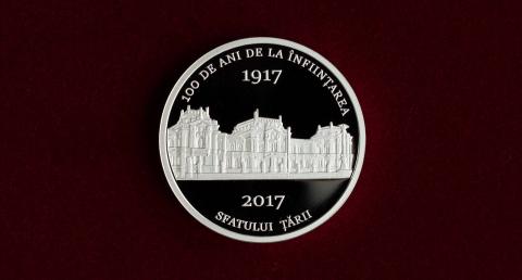 - в верхней части выгравированы надпись „100 DE ANI DE LA ÎNFIINȚAREA” и год „1917”;