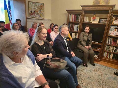 Глава Национального банка Молдовы г-жа Анка Драгу приняла участие в дискуссии с представителями молдавской общины в Соединенных Штатах Америки (США), состоявшейся в штаб-квартире посольства Республики Молдова в США. Участники проявили интерес к последним событиям в экономике Республики Молдова, развитию финансового рынка и стабильности банковского сектора.