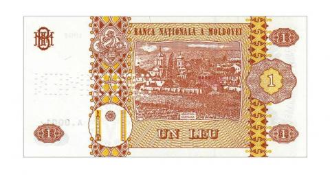 Оборотная сторона: Внутри рамы графическое изображение Монастыря Кэприяна и надпись "MANASTIREA CAPRIANA", номинальная стоимость в цифрах и буквах, два вертикальных декоративных элемента, герб Штефана чел Маре, стилизованное изображение колонны Траяна, Колонны Бесконечности и между ними полумесяц, название эмиссионного банка "BANCA NATIONALA A MOLDOVEI", художественно оформленная аббревиатура "BNM". |