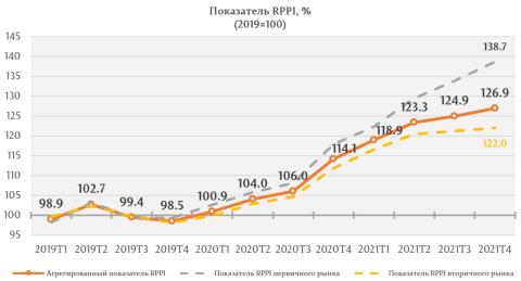 Показатель RPPI соответствующий ценам на первичном рынке жилой недвижимости составил 138,7 процента, будучи больше на 17,7 процента по сравнению с четвертым кварталом 2020.