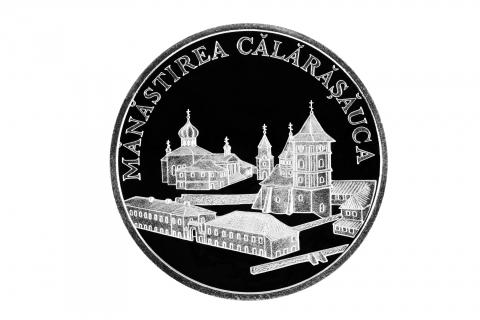 •  в верхней части, по окружности монеты – заглавными буквами выгравирована надпись "MĂNĂSTIREA CĂLĂRĂŞĂUCA" .