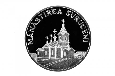 •  в верхней части, по окружности монеты – заглавными буквами выгравирована надпись "MĂNĂSTIREA SURUCENI" .