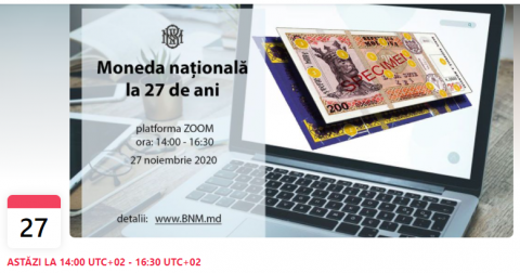 Национальный банк Молдовы (НБМ) организует завтра, 27 ноября, онлайн-мероприятие по случаю 27-й годовщины введения национальной валюты - молдавского лея.