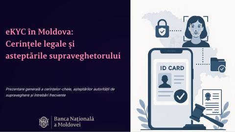 Национальный банк Молдовы (НБМ) в партнерстве с Международной финансовой корпорацией (IFC) недавно организовал онлайн-семинар, посвященный внедрению электронной идентификации клиентов (eKYC) в Молдове. В мероприятии приняли участие около 140 представителей финансовых учреждений. Особое внимание было уделено специалистам по обеспечению соответствия, предотвращению и борьбе с отмыванием денег, цифровой трансформации и цифровой регистрации клиентов.